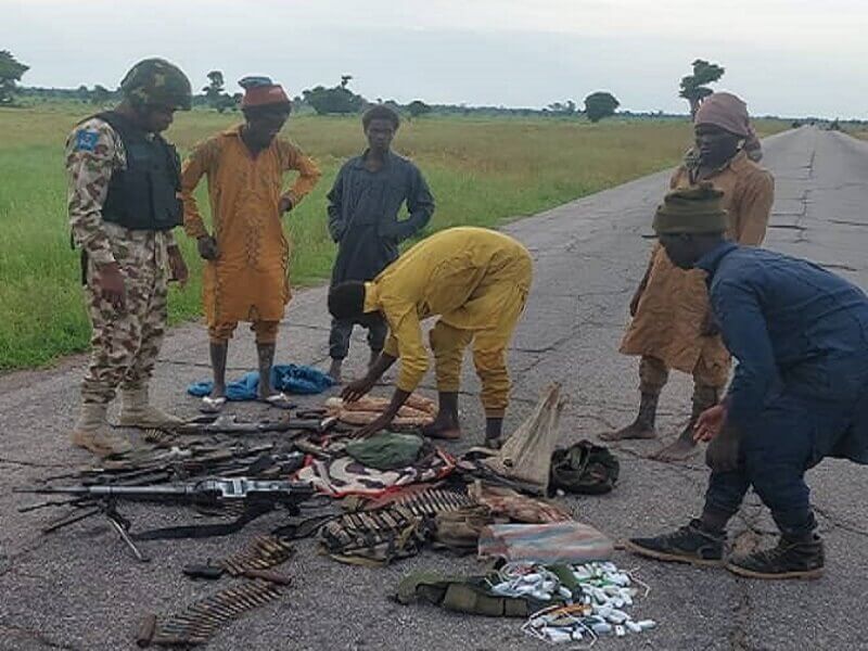 The firearms and incendiaries recovered from the terrorists include 8 AK 47 rifles, 1General Purpose Machine Gun (GPMG), 2 Fabrique Nationale (FN) Rifles, 1 Dane Gun, 1Makarov Pistol, 89 rounds of 7.62mm (Special) ammunition, 89 rounds of 12.7mm ammunition, 66 rounds of 7.62mm (NATO) ammunition, 5 x 9mm rounds of ammunition, 2 Hand Grenades, 27 AK 47 Rifle magazines, and 2 FN Rifle magazines.