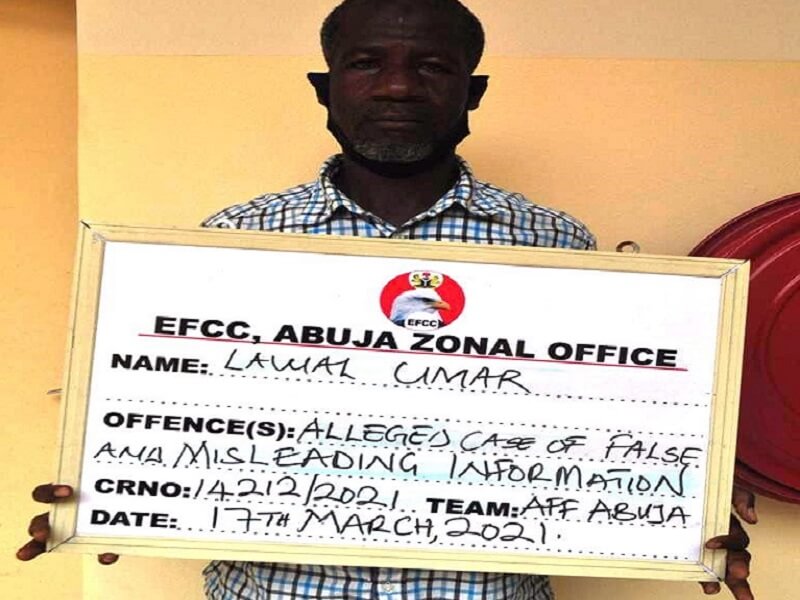 The Economic and Financial Crimes Commission, EFCC, Abuja Zonal Office, on Thursday, March 18, 2021, arraigned the trio of Theophilus Omambala, Lawal Umar, and Alexander Danjuma before Justice Musa Usman of the Federal Capital Territory High Court, Bwari, Abuja on one count charge bordering on false and misleading information.